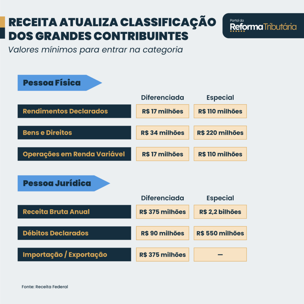 A Receita Federal atualizou recentemente os critérios para a classificação de grandes contribuintes, com parâmetros mais abrangentes e alinhados à realidade atual de pessoas físicas e jurídicas. A medida faz parte de um movimento mais amplo de fortalecimento da fiscalização e de aprimoramento dos mecanismos de controle tributário.